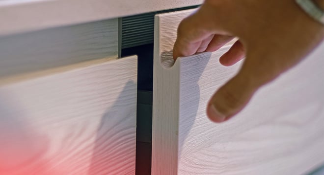 Smartedge copes perfectly with an increasing tendency for small batches and frequent demands for customisation, avoiding production bottlenecks and unprofitable downtime. Smartedge will finish any type of edge - sanding, coating, drying - from start to finish. No need to stop machinery for time-consuming adjustments according to edge shape or thickness. Disassembling the application head, re-aligning the components to handle a different edge can repeatedly hold up production. Our patented Edge&Go head for vacuum application technology enables continuous processing of different edges.